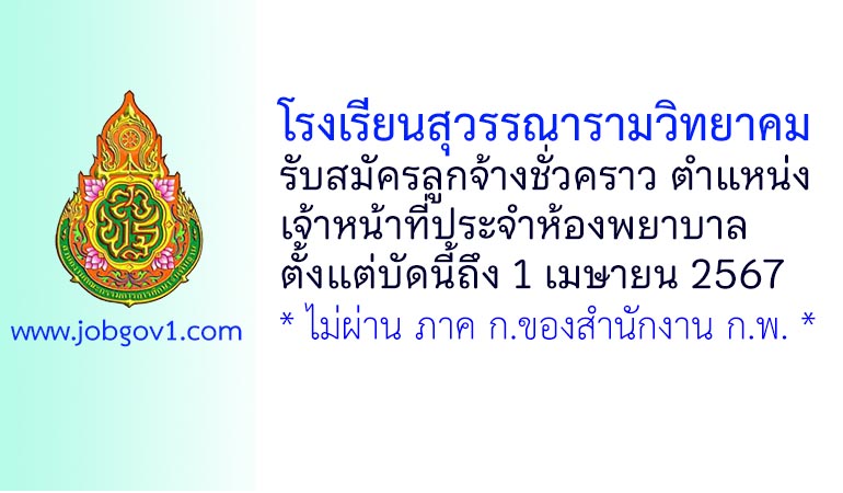 โรงเรียนสุวรรณารามวิทยาคม รับสมัครลูกจ้างชั่วคราว ตำแหน่งเจ้าหน้าที่ประจำห้องพยาบาล ตั้งแต่บัดนี้ถึง 1 เมษายน 2567