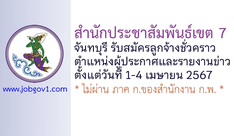 สำนักประชาสัมพันธ์เขต 7 รับสมัครลูกจ้างชั่วคราว ตำแหน่งผู้ประกาศและรายงานข่าว ตั้งแต่วันที่ 1-4 เมษายน 2567