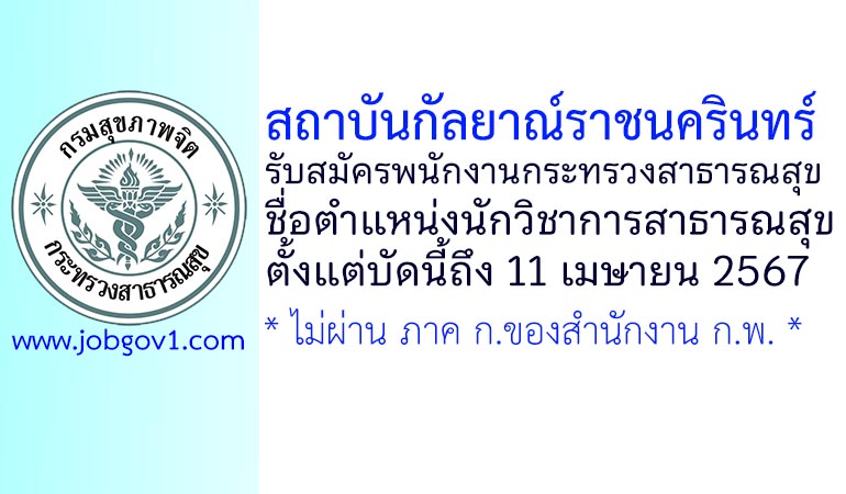 สถาบันกัลยาณ์ราชนครินทร์ รับสมัครพนักงานกระทรวงสาธารณสุขทั่วไป ตำแหน่งนักวิชาการสาธารณสุข ตั้งแต่บัดนี้ถึง 11 เมษายน 2567