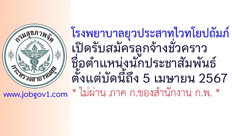 โรงพยาบาลยุวประสาทไวทโยปถัมภ์ รับสมัครลูกจ้างชั่วคราว ตำแหน่งนักประชาสัมพันธ์ ตั้งแต่บัดนี้ถึง 5 เมษายน 2567