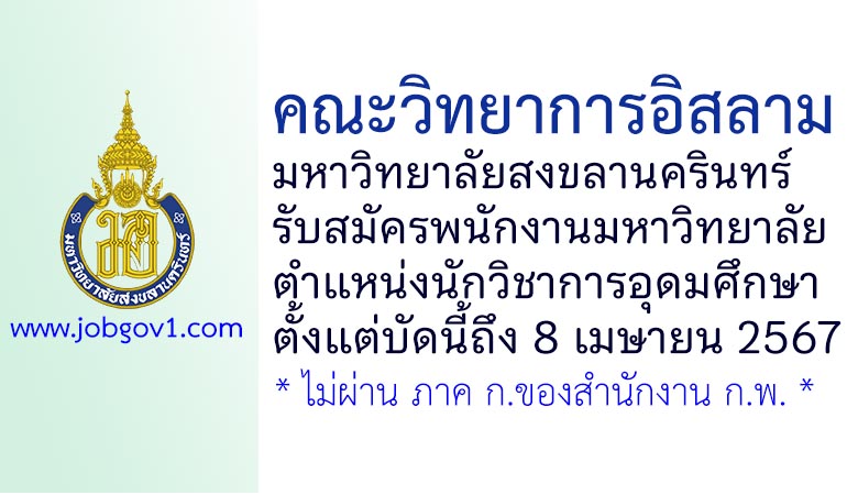 คณะวิทยาการอิสลาม มหาวิทยาลัยสงขลานครินทร์ รับสมัครพนักงานมหาวิทยาลัย ตำแหน่งนักวิชาการอุดมศึกษา ตั้งแต่บัดนี้ถึง 8 เมษายน 2567