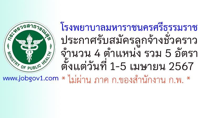 โรงพยาบาลมหาราชนครศรีธรรมราช รับสมัครลูกจ้างชั่วคราว 5 อัตรา ตั้งแต่วันที่ 1-5 เมษายน 2567