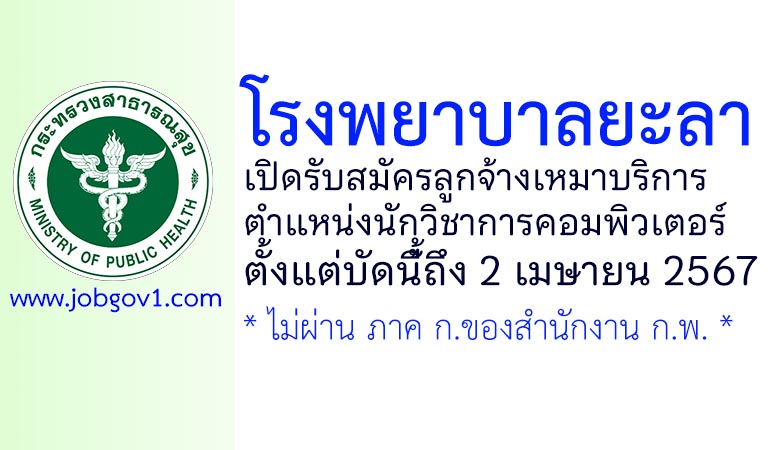โรงพยาบาลยะลา รับสมัครลูกจ้างเหมาบริการ ตำแหน่งนักวิชาการคอมพิวเตอร์ ตั้งแต่บัดนี้้ถึง 2 เมษายน 2567