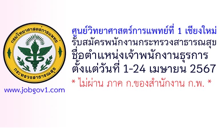 ศูนย์วิทยาศาสตร์การแพทย์ที่ 1 เชียงใหม่ รับสมัครพนักงานกระทรวงสาธารณสุขทั่วไป ตำแหน่งเจ้าพนักงานธุรการ ตั้งแต่วันที่ 1-24 เมษายน 2567