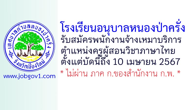 โรงเรียนอนุบาลหนองป่าครั่ง รับสมัครพนักงานจ้างเหมาบริการ ตำแหน่งครูผู้สอนวิชาภาษาไทย ตั้งแต่บัดนี้ถึง 10 เมษายน 2567
