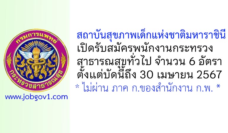 สถาบันสุขภาพเด็กแห่งชาติมหาราชินี รับสมัครพนักงานกระทรวงสาธารณสุขทั่วไป 6 อัตรา ตั้งแต่บัดนี้ถึง 30 เมษายน 2567