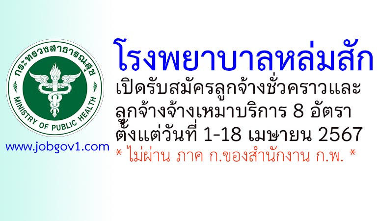 โรงพยาบาลหล่มสัก รับสมัครลูกจ้างชั่วคราวและลูกจ้างจ้างเหมาบริการ 8 อัตรา ตั้งแต่วันที่ 1-18 เมษายน 2567