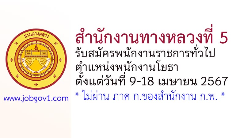 สำนักงานทางหลวงที่ 5 รับสมัครพนักงานราชการทั่วไป ตำแหน่งพนักงานโยธา ตั้งแต่วันที่ 9-18 เมษายน 2567