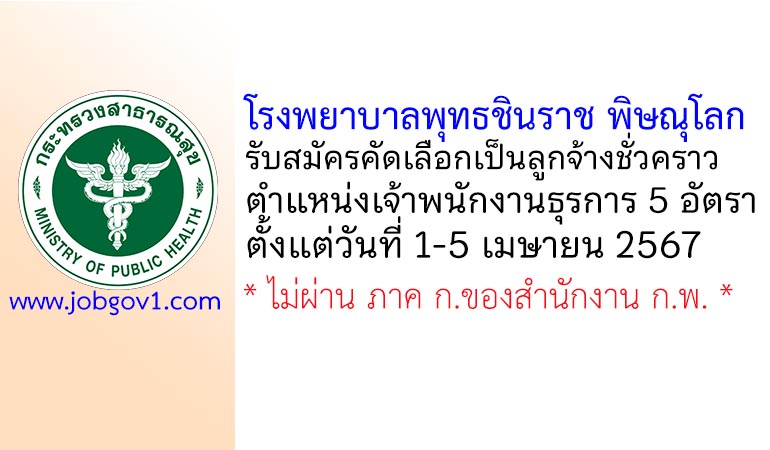 โรงพยาบาลพุทธชินราช พิษณุโลก รับสมัครลูกจ้างชั่วคราว ตำแหน่งเจ้าพนักงานธุรการ 5 อัตรา ตั้งแต่วันที่ 1-5 เมษายน 2567