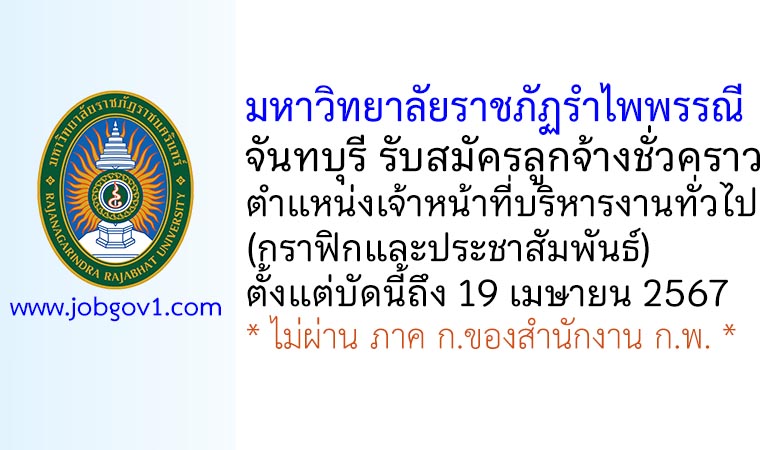 มหาวิทยาลัยราชภัฏรำไพพรรณี รับสมัครลูกจ้างชั่วคราว ตำแหน่งเจ้าหน้าที่บริหารงานทั่วไป (กราฟิกและประชาสัมพันธ์) ตั้งแต่บัดนี้ถึง 19 เมษายน 2567