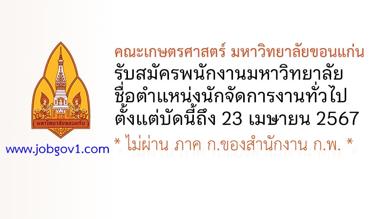 คณะเกษตรศาสตร์ มหาวิทยาลัยขอนแก่น รับสมัครพนักงานมหาวิทยาลัย ตำแหน่งนักจัดการงานทั่วไป ตั้งแต่บัดนี้ถึง 23 เมษายน 2567