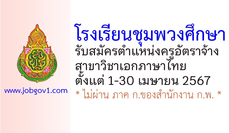 โรงเรียนชุมพวงศึกษา รับสมัครครูอัตราจ้าง สาขาวิชาเอกภาษาไทย ตั้งแต่วันที่ 1-30 เมษายน 2567