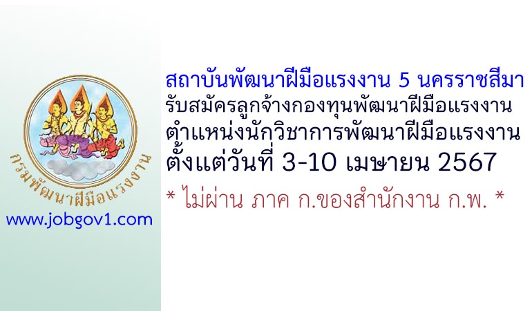สถาบันพัฒนาฝีมือแรงงาน 5 นครราชสีมา รับสมัครลูกจ้างกองทุน ตำแหน่งนักวิชาการพัฒนาฝีมือแรงงาน ตั้งแต่วันที่ 3-10 เมษายน 2567
