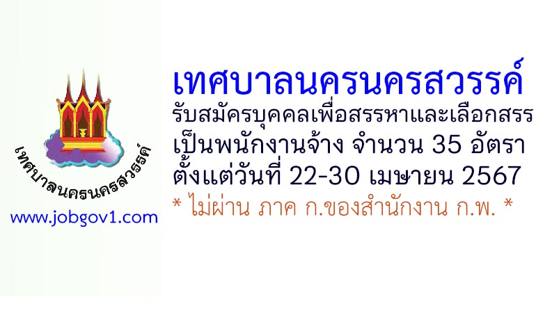 เทศบาลนครนครสวรรค์ รับสมัครบุคคลเพื่อสรรหาและเลือกสรรเป็นพนักงานจ้าง 35 อัตรา ตั้งแต่วันที่ 22-30 เมษายน 2567
