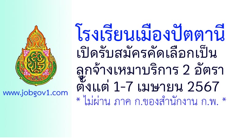 โรงเรียนเมืองปัตตานี รับสมัครคัดเลือกเป็นลูกจ้างเหมาบริการ 2 อัตรา ตั้งแต่วันที่ 1-7 เมษายน 2567