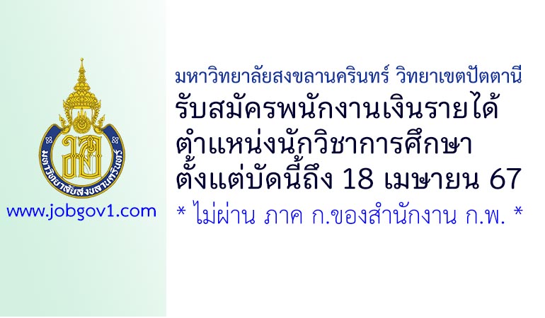 มหาวิทยาลัยสงขลานครินทร์ วิทยาเขตปัตตานี รับสมัครพนักงานเงินรายได้ ตำแหน่งนักวิชาการศึกษา ตั้งแต่วันที่ 1-18 เมษายน 2567