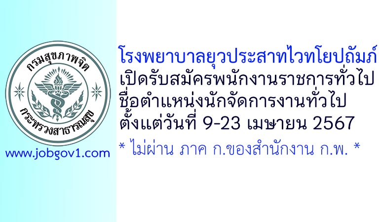 ประกาศกรมสุขภาพจิต เรื่อง รับสมัครบุคคลเพื่อเลือกสรรเป็นพนักงานราชการทั่วไป ในตำแหน่งนักจัดการงานทั่วไป หน่วยงาน โรงพยาบาลยุวประสาทไวทโยปถัมภ์