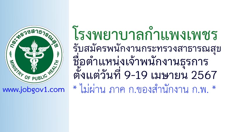 โรงพยาบาลกำแพงเพชร รับสมัครพนักงานกระทรวงสาธารณสุขทั่วไป ตำแหน่งเจ้าพนักงานธุรการ ตั้งแต่วันที่ 9-19 เมษายน 2567