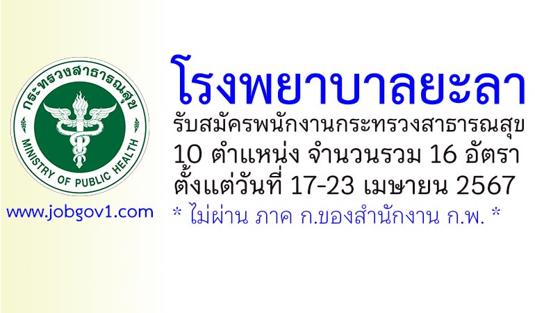 โรงพยาบาลยะลา รับสมัครพนักงานกระทรวงสาธารณสุขทั่วไป 16 อัตรา ตั้งแต่วันที่ 17-23 เมษายน 2567