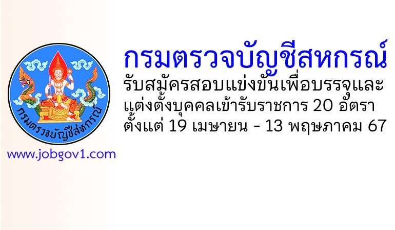 กรมตรวจบัญชีสหกรณ์ รับสมัครสอบแข่งขันเพื่อบรรจุและแต่งตั้งบุคคลเข้ารับราชการ 20 อัตรา ตั้งแต่ 19 เมษายน – 13 พฤษภาคม 2567