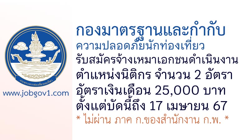 กองมาตรฐานและกำกับความปลอดภัยนักท่องเที่ยว รับสมัครจ้างเหมาเอกชนดำเนินงาน ตำแหน่งนิติกร 2 อัตรา ตั้งแต่บัดนี้ถึง 17 เมษายน 2567