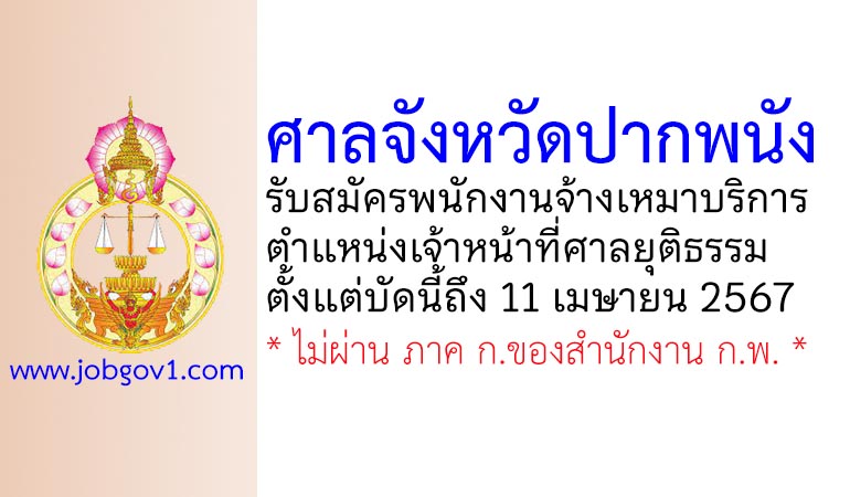 ศาลจังหวัดปากพนัง รับสมัครพนักงานจ้างเหมาบริการ ตำแหน่งเจ้าหน้าที่ศาลยุติธรรม ตั้งแต่บัดนี้ถึง 11 เมษายน 2567