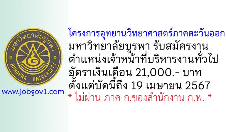 โครงการอุทยานวิทยาศาสตร์ภาคตะวันออก มหาวิทยาลัยบูรพา รับสมัครเจ้าหน้าที่บริหารงานทั่วไป ตั้งแต่บัดนี้ถึง 19 เมษายน 2567