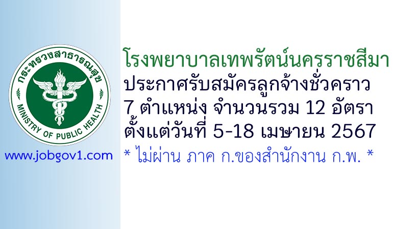 โรงพยาบาลเทพรัตน์นครราชสีมา รับสมัครลูกจ้างชั่วคราว 12 อัตรา ตั้งแต่วันที่ 5-18 เมษายน 2567