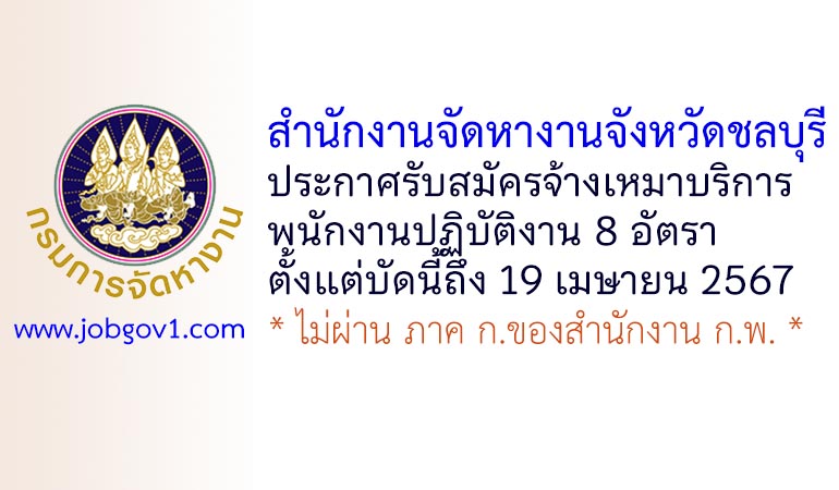 สำนักงานจัดหางานจังหวัดชลบุรี รับสมัครจ้างเหมาบริการพนักงานปฏิบัติงาน 8 อัตรา ตั้งแต่บัดนี้ถึง 19 เมษายน 2567