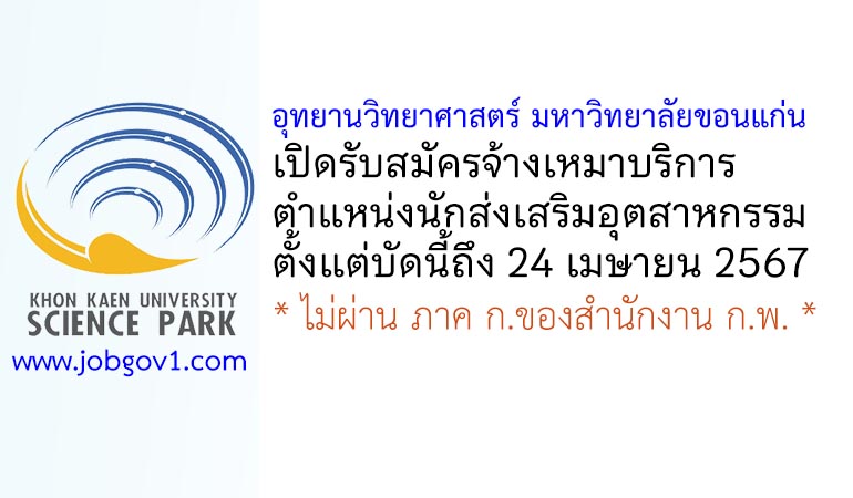 อุทยานวิทยาศาสตร์ มหาวิทยาลัยขอนแก่น รับสมัครจ้างเหมาบริการ ตำแหน่งนักส่งเสริมอุตสาหกรรม ตั้งแต่บัดนี้ถึง 24 เมษายน 2567