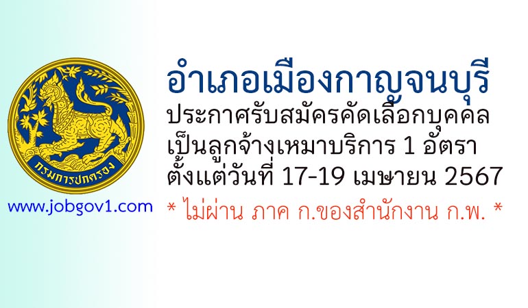 อำเภอเมืองกาญจนบุรี รับสมัครลูกจ้างเหมาบริการ จำนวน 1 อัตรา ตั้งแต่วันที่ 17-19 เมษายน 2567