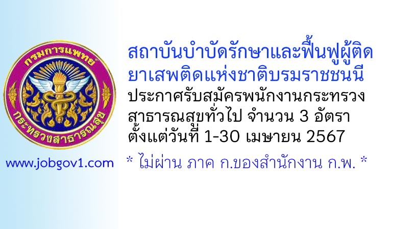 สถาบันบำบัดรักษาและฟื้นฟูผู้ติดยาเสพติดแห่งชาติบรมราชชนนี รับสมัครพนักงานกระทรวงสาธารณสุขทั่วไป 3 อัตรา ตั้งแต่วันที่ 1-30 เมษายน 2567