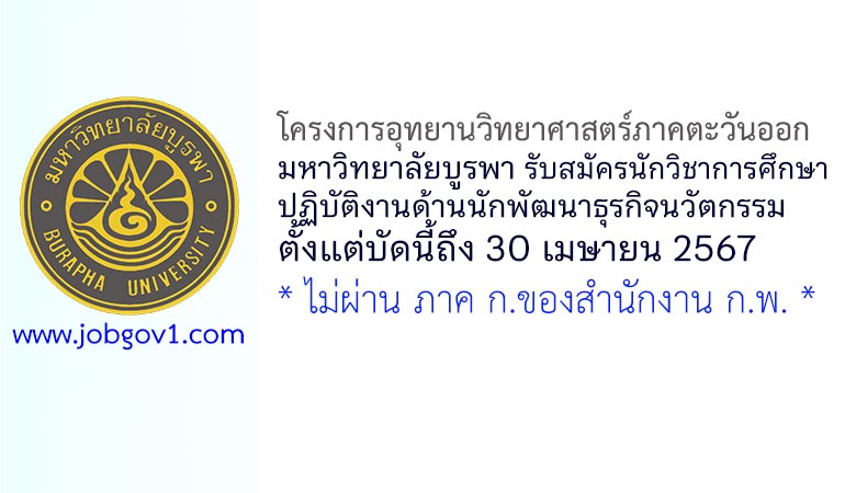 โครงการอุทยานวิทยาศาสตร์ภาคตะวันออก มหาวิทยาลัยบูรพา รับสมัครนักวิชาการศึกษา ปฏิบัติงานด้านนักพัฒนาธุรกิจนวัตกรรม ตั้งแต่บัดนี้ถึง 30 เมษายน 2567