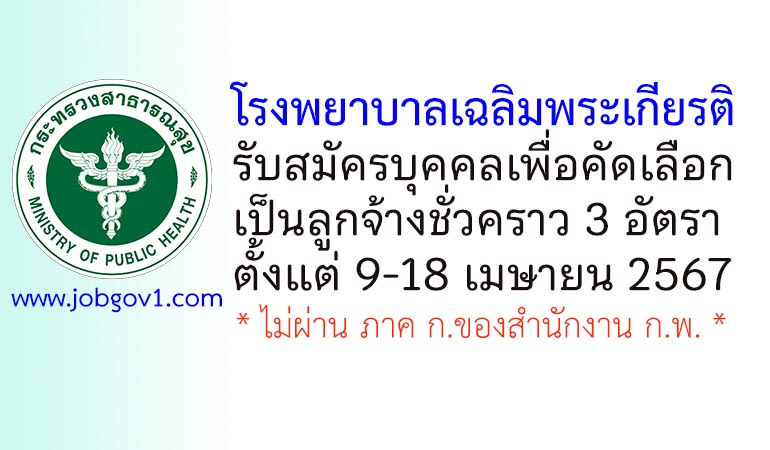 โรงพยาบาลเฉลิมพระเกียรติ รับสมัครบุคคลเพื่อคัดเลือกเป็นลูกจ้างชั่วคราว 3 อัตรา ตั้งแต่วันที่ 9-18 เมษายน 2567