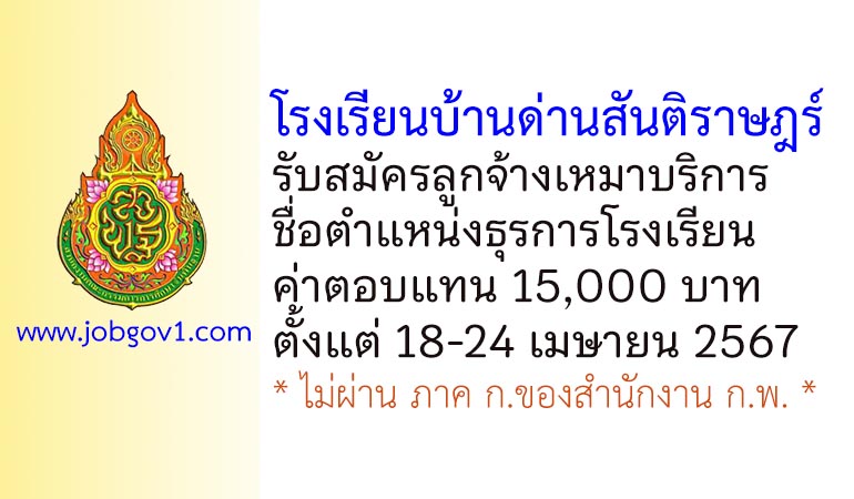 โรงเรียนบ้านด่านสันติราษฎร์ รับสมัครลูกจ้างเหมาบริการ ตำแหน่งธุรการโรงเรียน ตั้งแต่วันที่ 18-24 เมษายน 2567