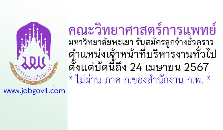 คณะวิทยาศาสตร์การแพทย์ มหาวิทยาลัยพะเยา รับสมัครลูกจ้างชั่วคราว ตำแหน่งเจ้าหน้าที่บริหารงานทั่วไป ตั้งแต่บัดนี้ถึง 24 เมษายน 2567