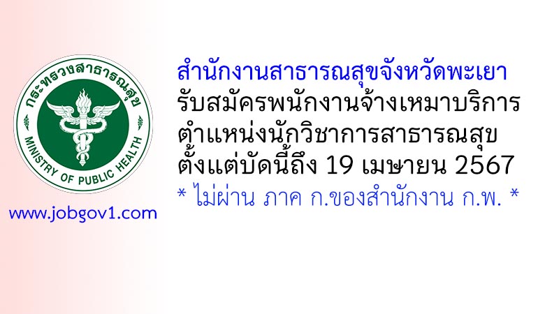 สำนักงานสาธารณสุขจังหวัดพะเยา รับสมัครพนักงานจ้างเหมาบริการ ตำแหน่งนักวิชาการสาธารณสุข ตั้งแต่บัดนี้ถึง 19 เมษายน 2567