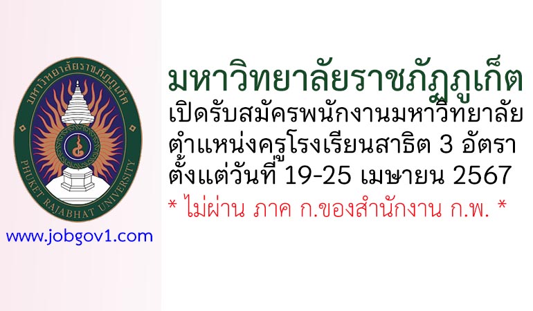 มหาวิทยาลัยราชภัฏภูเก็ต รับสมัครพนักงานมหาวิทยาลัย ตำแหน่งครูโรงเรียนสาธิต 3 อัตรา ตั้งแต่วันที่ 19-25 เมษายน 2567