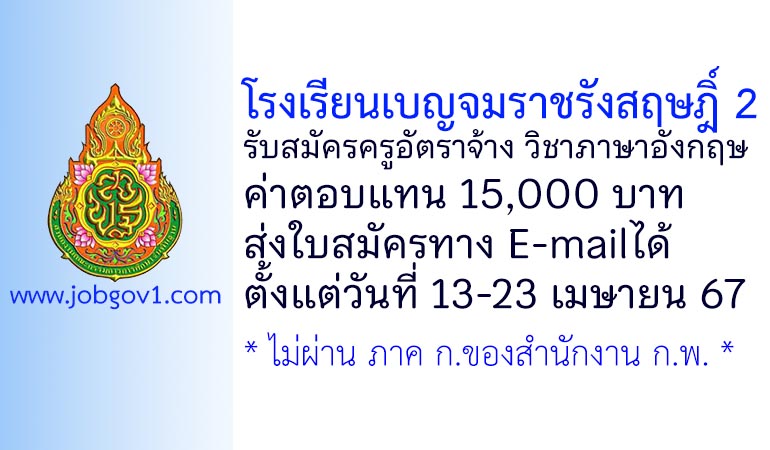 โรงเรียนเบญจมราชรังสฤษฎิ์ 2 รับสมัครครูอัตราจ้าง วิชาภาษาอังกฤษ ตั้งแต่วันที่ 13-23 เมษายน 2567