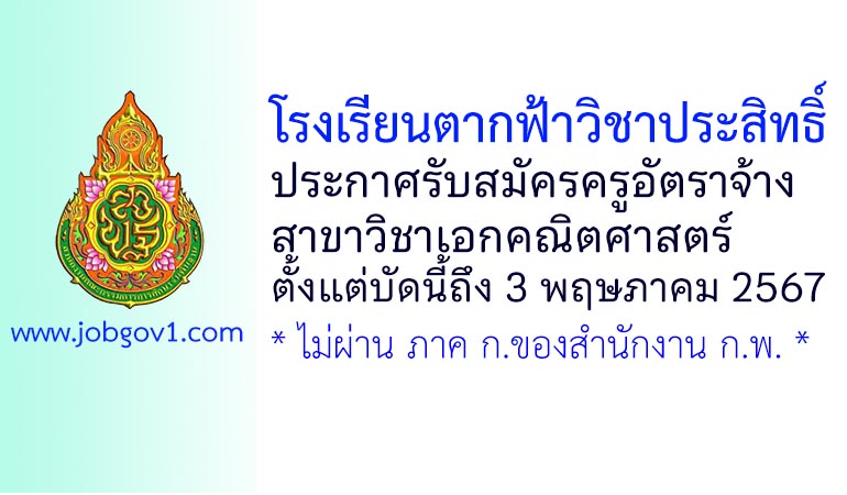 โรงเรียนตากฟ้าวิชาประสิทธิ์ รับสมัครครูอัตราจ้าง สาขาวิชาเอกคณิตศาสตร์ ตั้งแต่บัดนี้ถึง 3 พฤษภาคม 2567