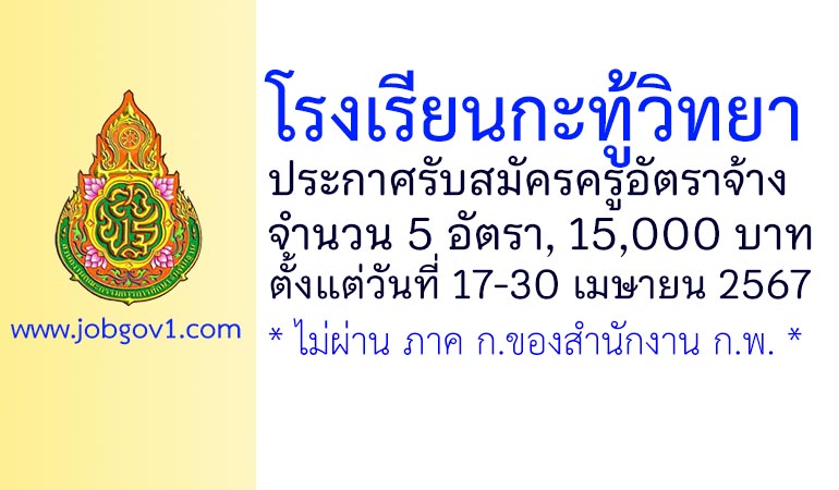 โรงเรียนกะทู้วิทยา รับสมัครครูอัตราจ้าง จำนวน 5 อัตรา ตั้งแต่วันที่ 17-30 เมษายน 2567