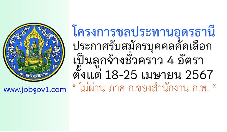 โครงการชลประทานอุดรธานี รับสมัครบุคคลเพื่อคัดเลือกเป็นลูกจ้างชั่วคราว 4 อัตรา ตั้งแต่วันที่ 18-25 เมษายน 2567
