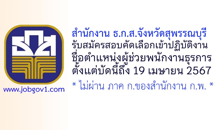 สำนักงาน ธ.ก.ส.จังหวัดสุพรรณบุรี รับสมัครสอบคัดเลือกเข้าปฏิบัติงาน ตำแหน่งผู้ช่วยพนักงานธุรการ ตั้งแต่บัดนี้ถึง 19 เมษายน 2567