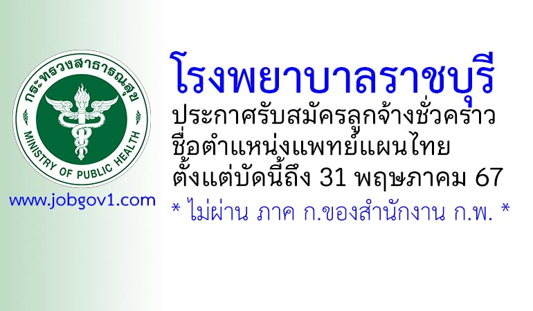 โรงพยาบาลราชบุรี รับสมัครลูกจ้างชั่วคราว ตำแหน่งแพทย์แผนไทย ตั้งแต่บัดนี้ถึง 31 พฤษภาคม 2567