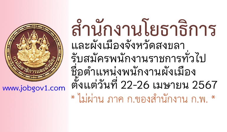 สำนักงานโยธาธิการและผังเมืองจังหวัดสงขลา รับสมัครพนักงานราชการทั่วไป ตำแหน่งพนักงานผังเมือง ตั้งแต่วันที่ 22-26 เมษายน 2567