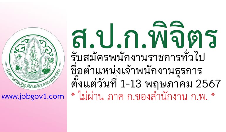 สำนักงานการปฏิรูปที่ดินจังหวัดพิจิตร รับสมัครพนักงานราชการทั่วไป ตำแหน่งเจ้าพนักงานธุรการ ตั้งแต่วันที่ 1-13 พฤษภาคม 2567