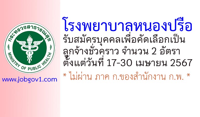 โรงพยาบาลหนองปรือ รับสมัครลูกจ้างชั่วคราว 2 อัตรา ตั้งแต่วันที่ 17-30 เมษายน 2567