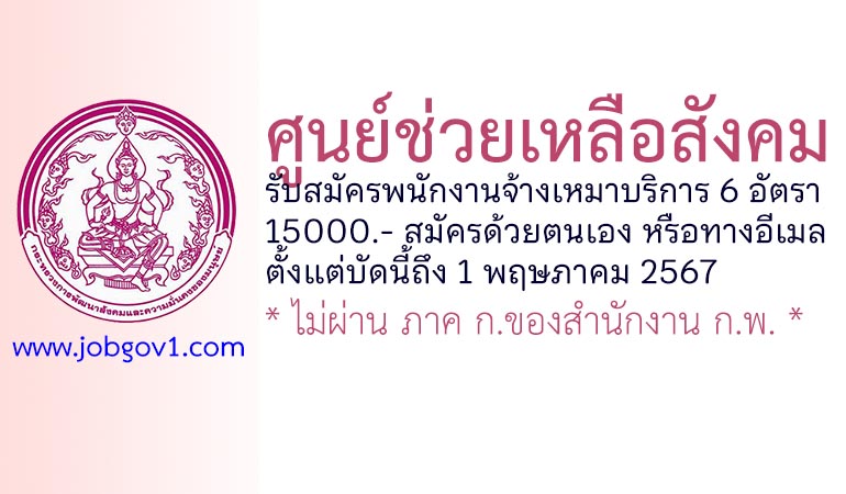 ศูนย์ช่วยเหลือสังคม รับสมัครพนักงานจ้างเหมาบริการ 6 อัตรา ตั้งแต่บัดนี้ถึง 1 พฤษภาคม 2567