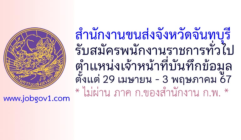 สำนักงานขนส่งจังหวัดจันทบุรี รับสมัครพนักงานราชการทั่วไป ตำแหน่งเจ้าหน้าที่บันทึกข้อมูล ตั้งแต่ 29 เมษายน – 3 พฤษภาคม 2567