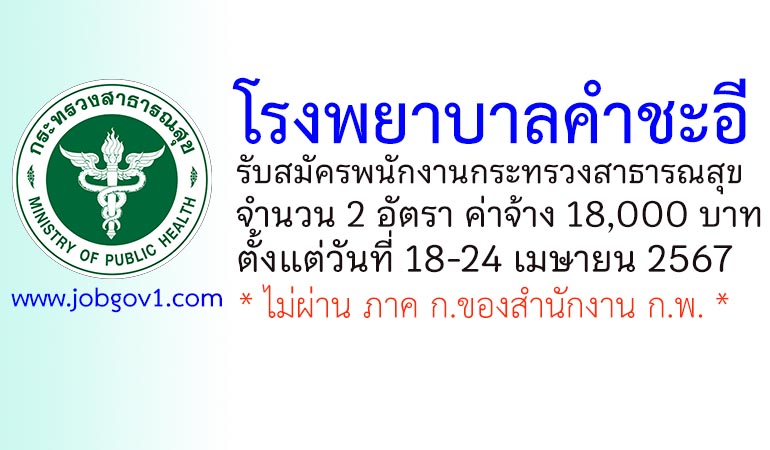 โรงพยาบาลคำชะอี รับสมัครพนักงานกระทรวงสาธารณสุขทั่วไป 2 อัตรา ตั้งแต่วันที่ 18-24 เมษายน 2567